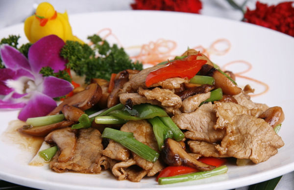 2、炒鍋放食用油燒熱放入蔥、姜煸成金黃色,放入鮑魚湯、雞湯、精鹽、新鮮松茸片、鮑魚,用中火煨至松茸菌、鮑魚入味,揀出蔥姜,用濕淀粉勾芡,出鍋裝入盤內(nèi)即成。
